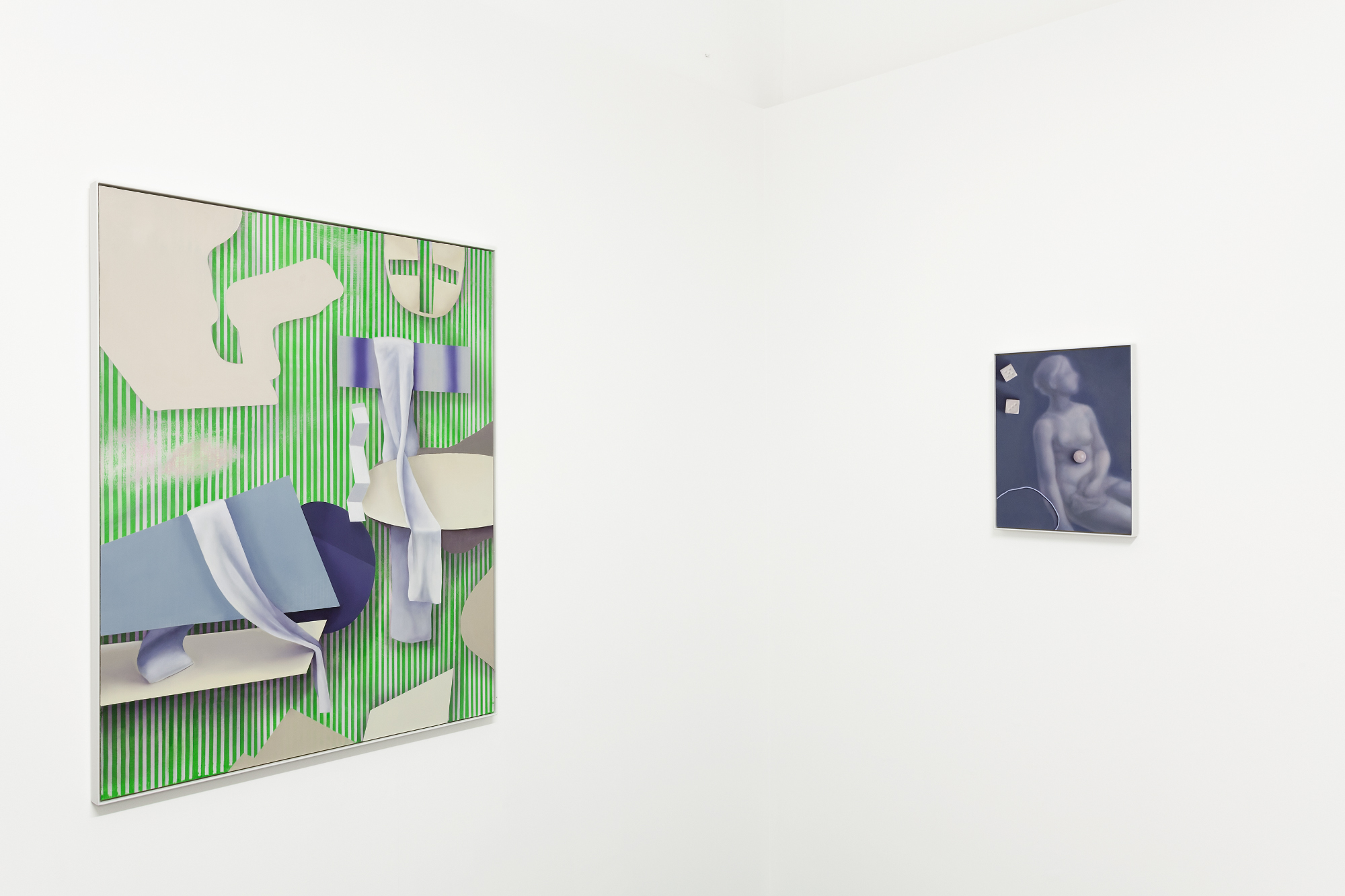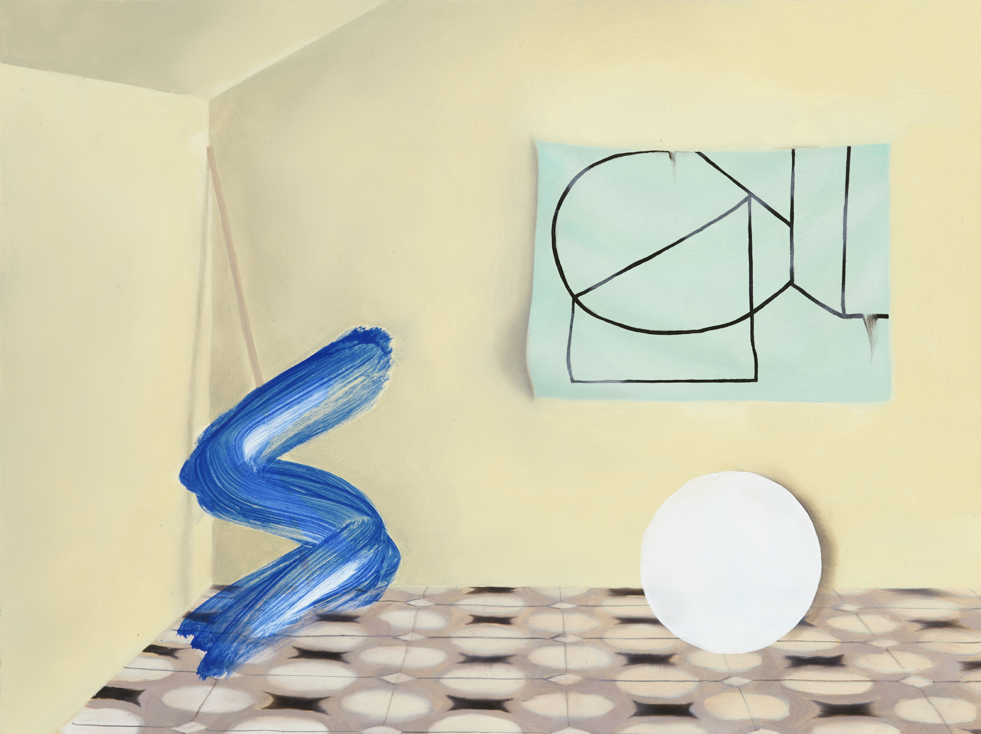 This body of paintings reflect upon virtual space and the precarious nature of the tools we use to navigate and describe it. In the digital realm, patterns of movement, consumerism and communication may be distilled, filtered, and analysed. Koops’ work considers how these metrics translate into forms and the manner in which these incomplete portraits are lodged within larger mosaics of information. 3D computer models similar to those found in CAD plans of apartments and IKEA product shots, are starting points for these works. These immaterial objects are then dragged backward through the analogue and material process of oil painting.