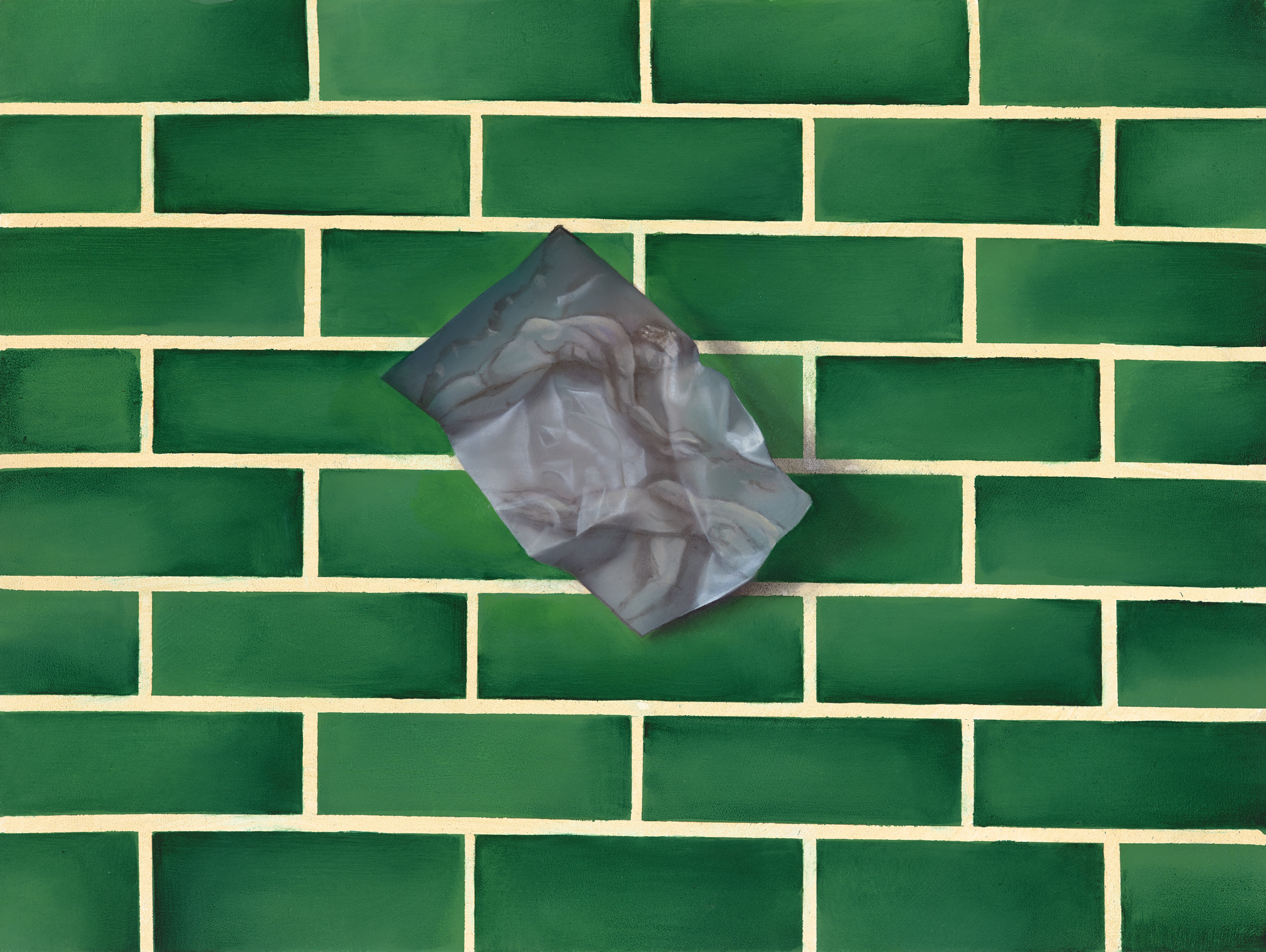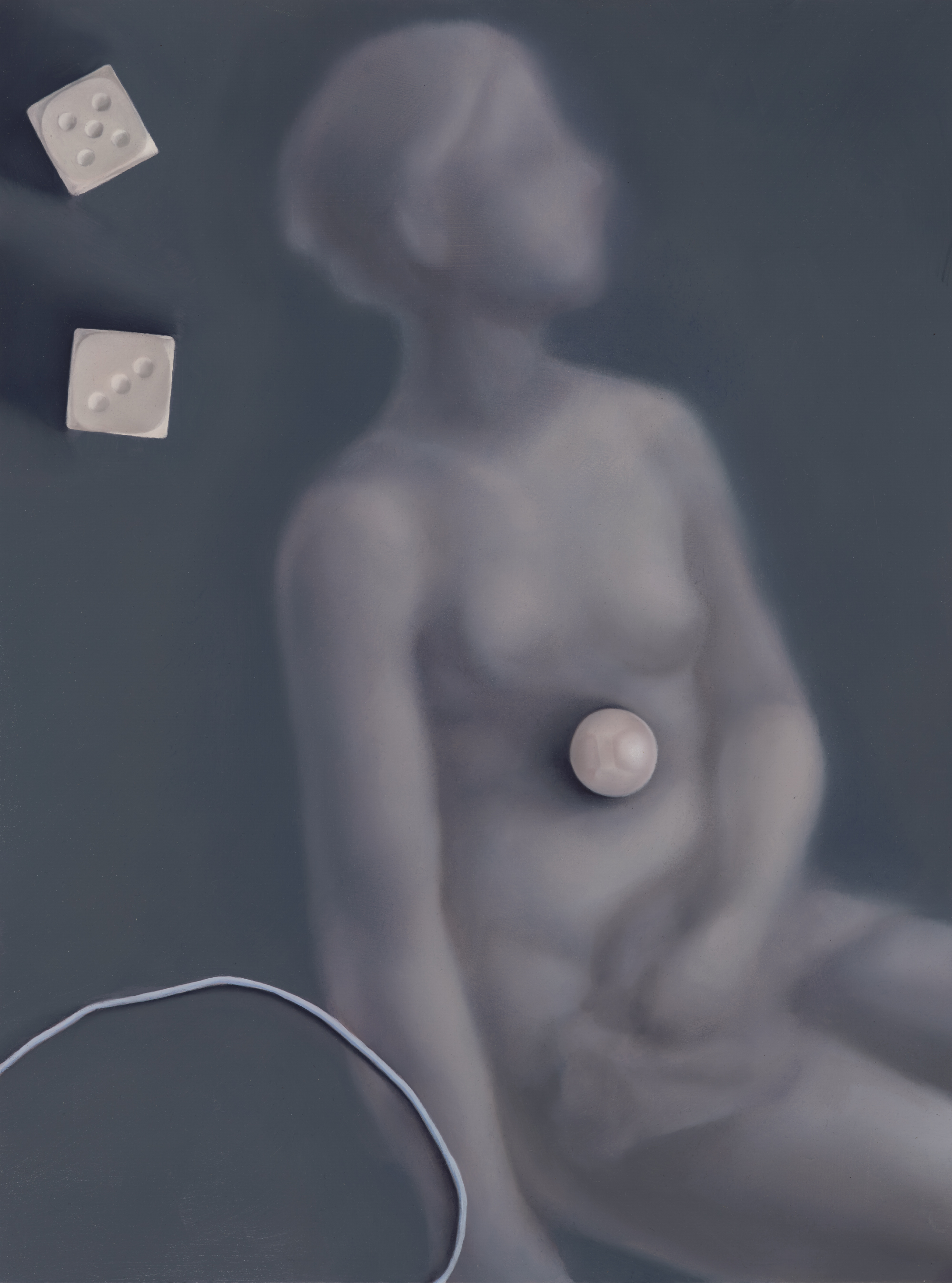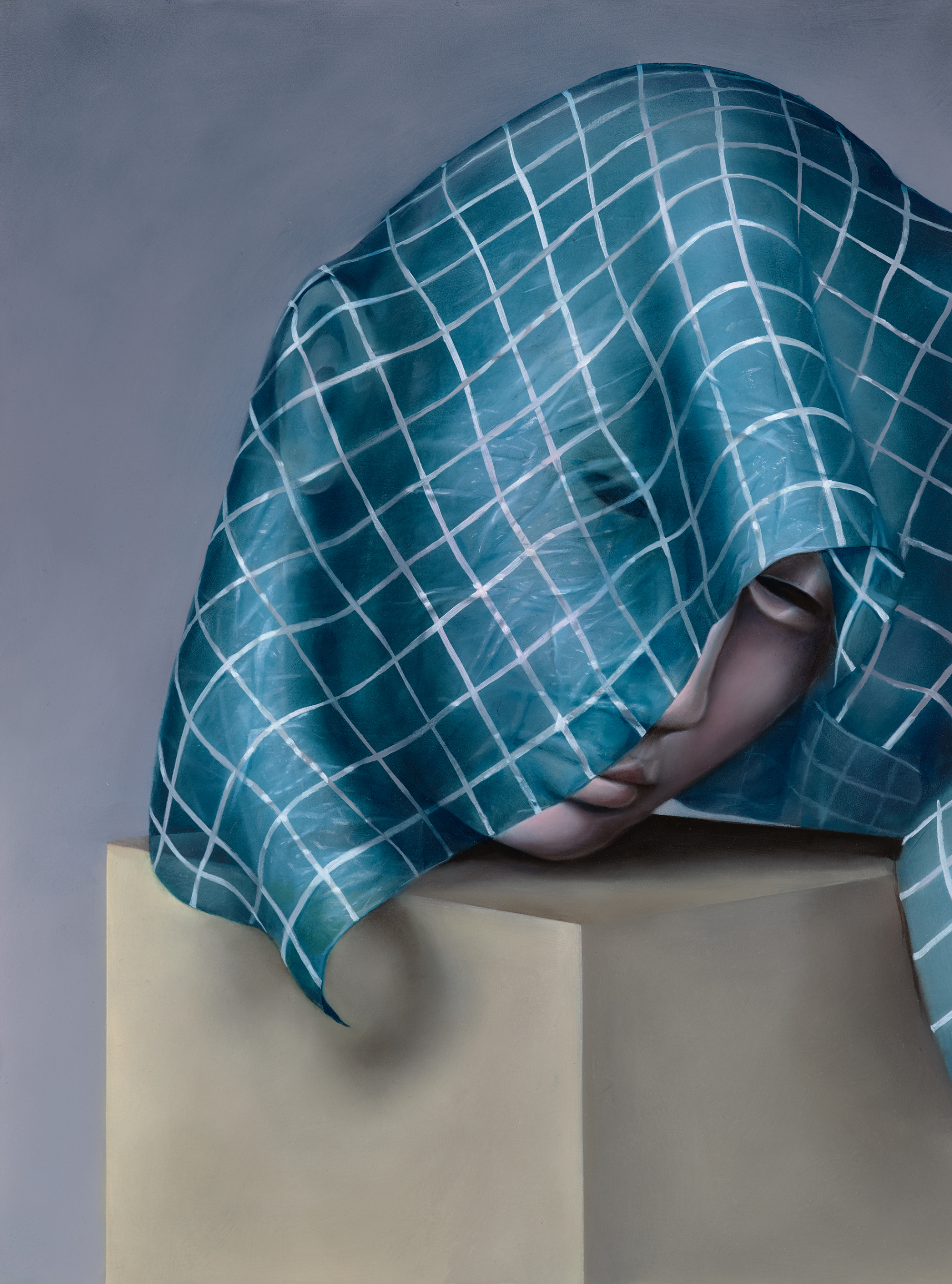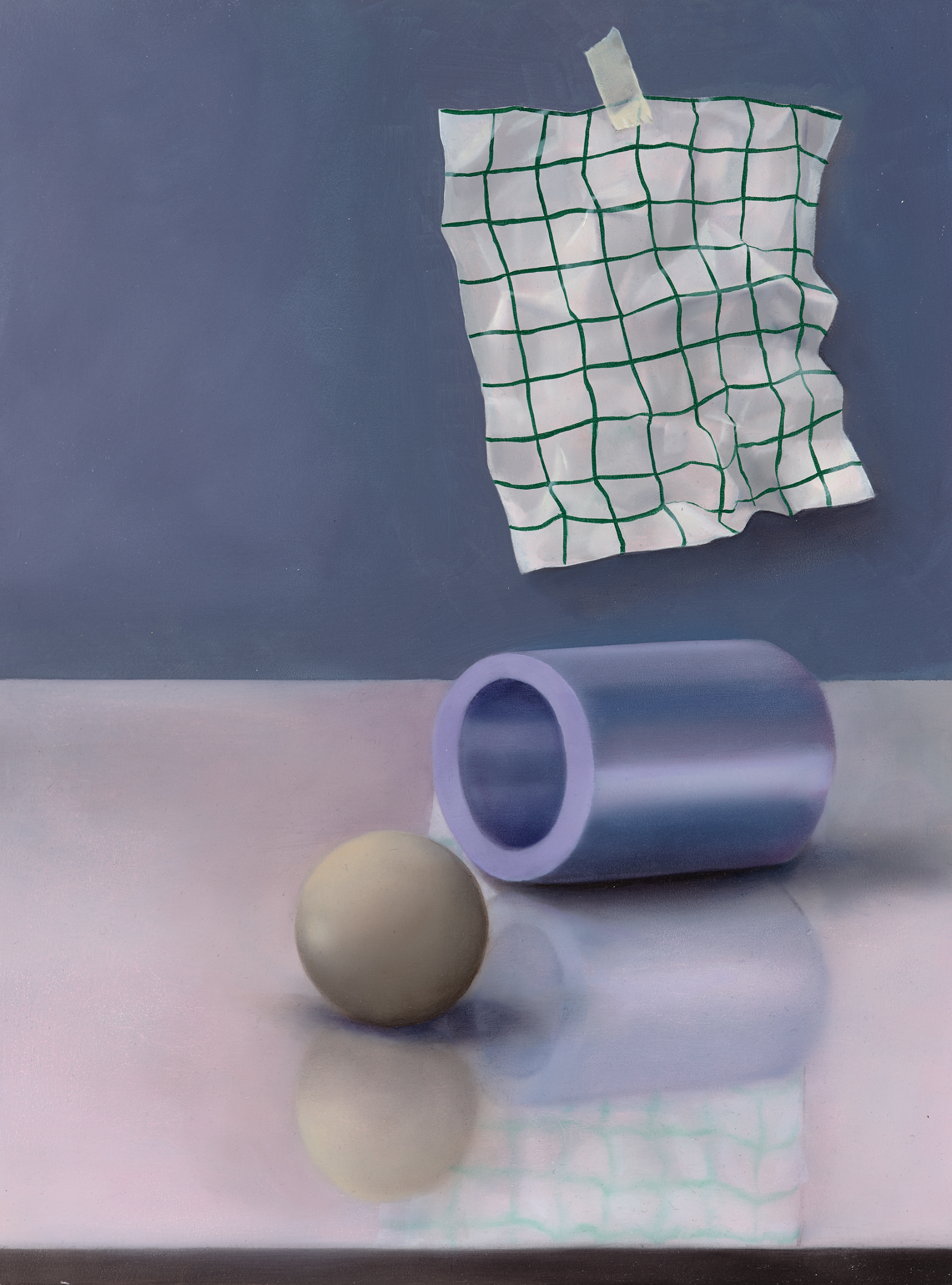 This body of paintings reflect upon virtual space and the precarious nature of the tools we use to navigate and describe it. In the digital realm, patterns of movement, consumerism and communication may be distilled, filtered, and analysed. Koops’ work considers how these metrics translate into forms and the manner in which these incomplete portraits are lodged within larger mosaics of information. 3D computer models similar to those found in CAD plans of apartments and IKEA product shots, are starting points for these works. These immaterial objects are then dragged backward through the analogue and material process of oil painting.