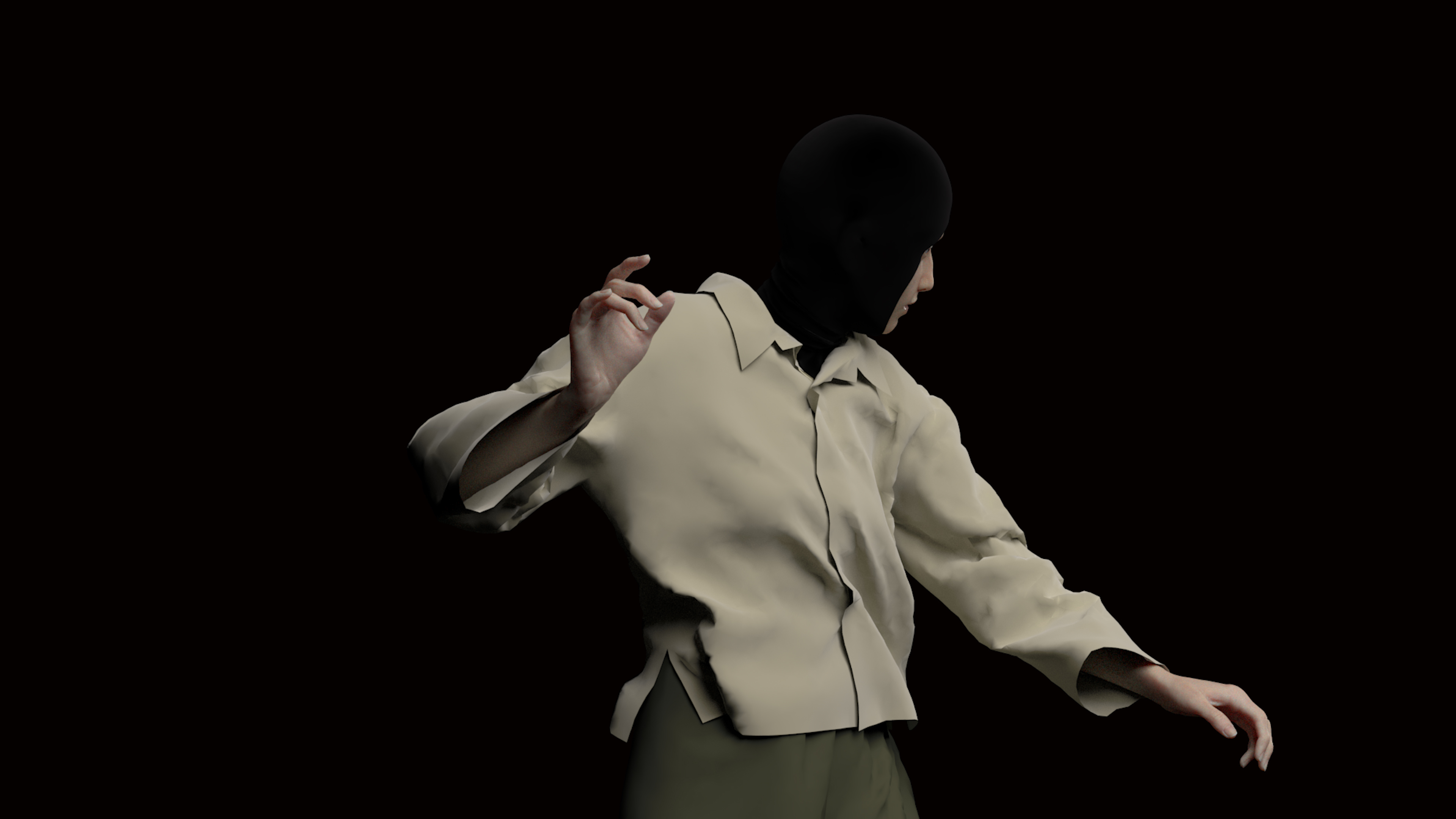 Hand in Glove (2025) employs the tragicomic grammar of mime as a critical framework for complicating the mimetic function of digital technologies. From Pierrot’s hapless, romantic melancholy to the industrial modernity of Chaplin, the mime has historically served as an avatar of alienation. The film follows a CGI figure whose movements are borrowed from mime’s extended family tree, from the Commedia dell’arte tradition of 16th-century Italy, to digital incarnations of mime found in motion capture acting, social media performances, and the repetitive loops of non-player characters (NPCs). Through disaggregated movement and the breaking-up of gestural flow, the mime can describe the technological conditions in which its own image is created. Bracketing the flow of image, the mime embodies a structural analysis of the technological conditions of image production and circulation.
