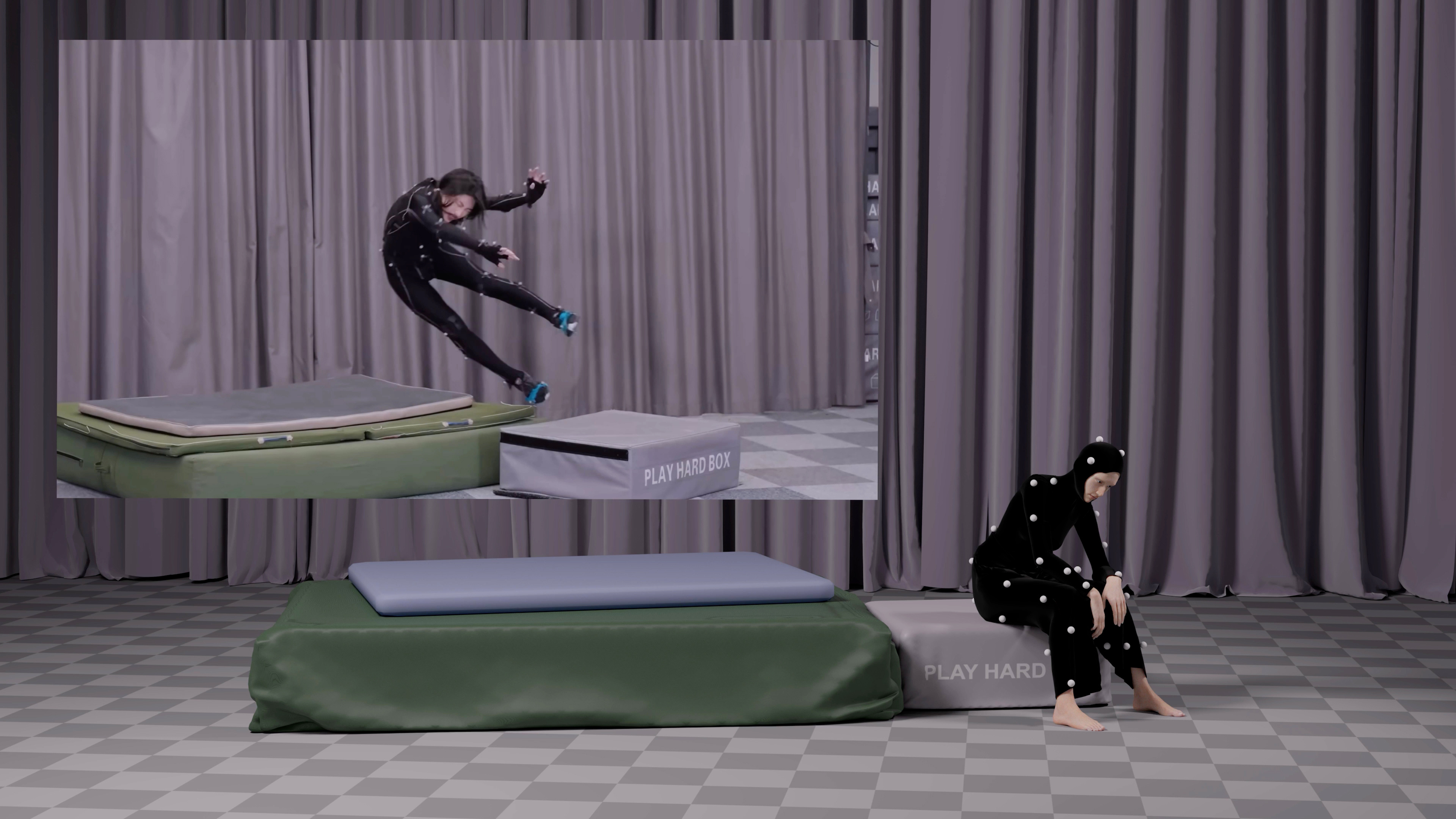 In Hand in Glove, sees the mime is positioned as a profoundly ambivalent figure—simultaneously servile and anarchic, charismatic and anonymous— one is never sure whether the mime’s play is enjoyed or enforced, offering a mirror to the labour conditions that underpin digital economies. The mime acts out of need via the laborious synthesis of gamified morsels of work doled out by platform logics, whilst silently acting out —via absurd and inflated performance—against them. The work enacts a tension between two possibilities: wherein mime is positioned as a form of tacit, situated, and embodied knowledge and the much less hopeful progression of mime logic wherein that self-same embodiment performs the flattened codes of algorithmic determination as a survival skill.